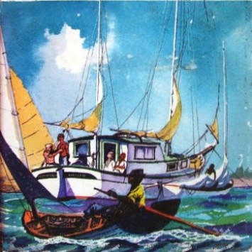 Evans Cottman loved the island life, the joy the people showed, helped of course by the tools of his profession, every patient insisted he ‘sound’ them with his stethoscope! No diagnosis was trusted unless the doctor used the ‘sounding rod’! Some of his experiences were harrowing, such as the difficulties of reaching a safe anchorage for his ketch Green Cross before an impending hurricane, but he grows familiar with the Bahamian waters on his yacht, and the pleasure of building his home. As people say when his boat came in sight, “de doctah done reach”!