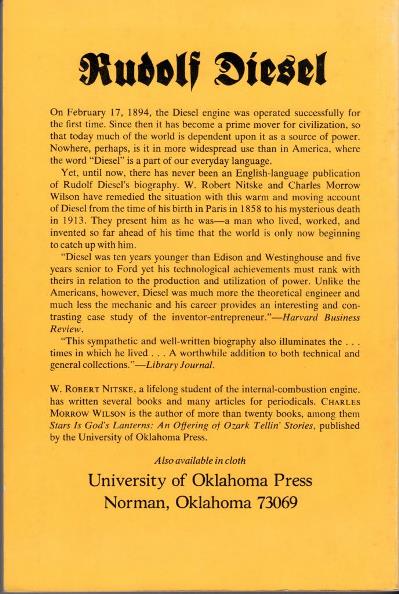 For the definitive biography:  Rudolf Diesel: Pioneer of the Age of Power by  W. R. Nitske and C. M. Wilson (1965)
